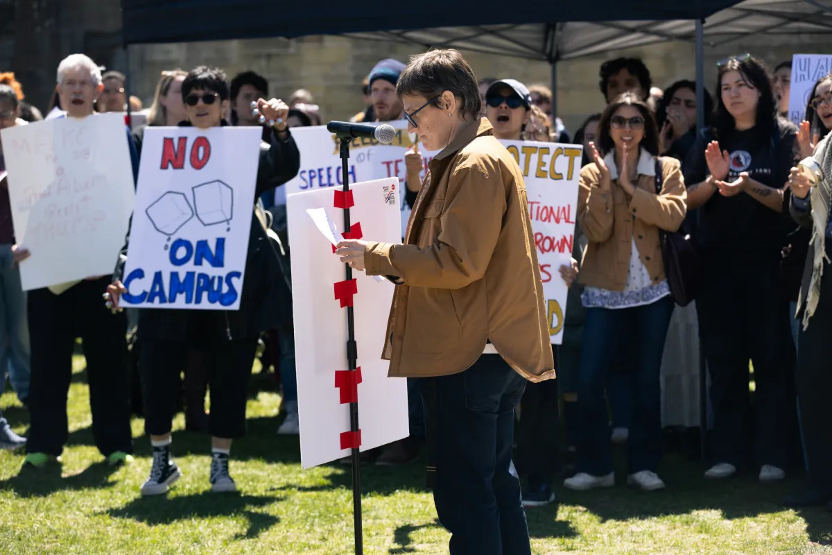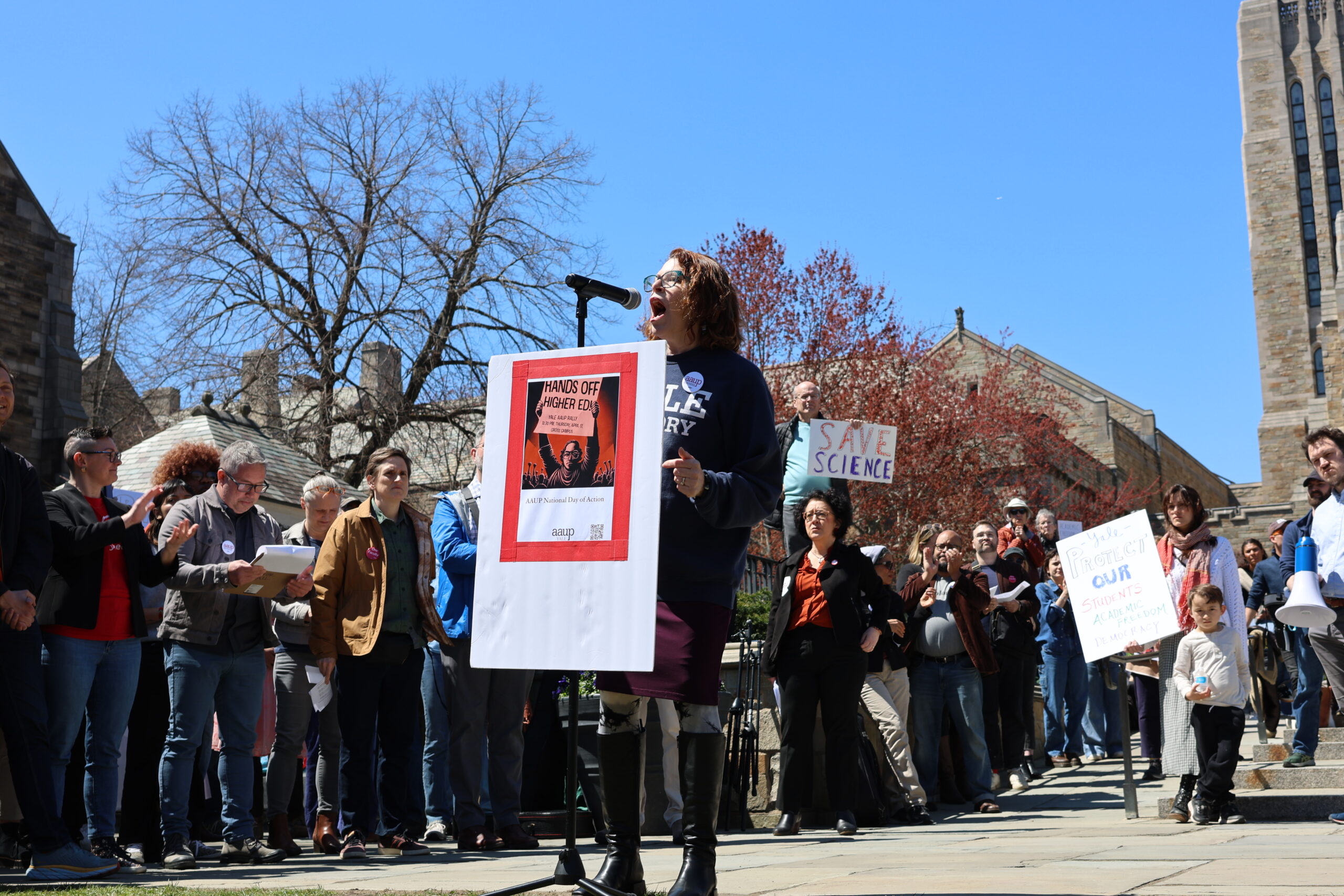 On April 17, 2025, our chapter gathered roughly 500 people on Cross Campus for a rally to protect higher education against funding suspensions, deportations of international community members, and federal attacks on academic freedom.