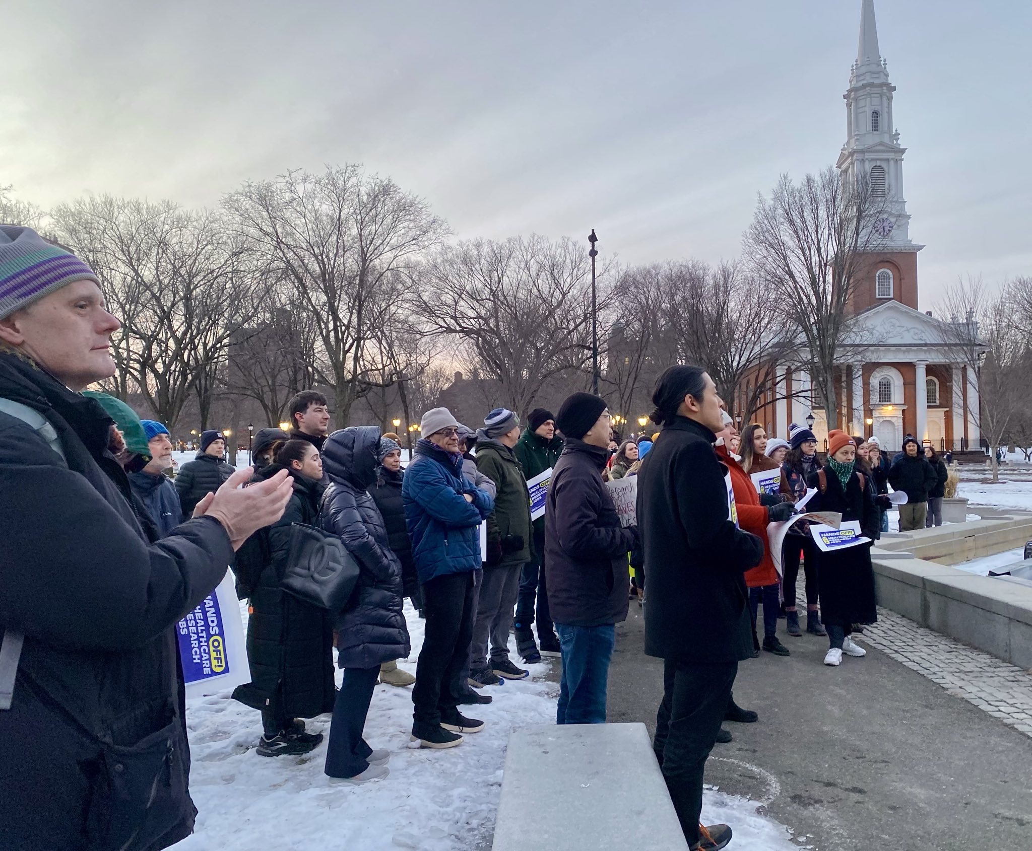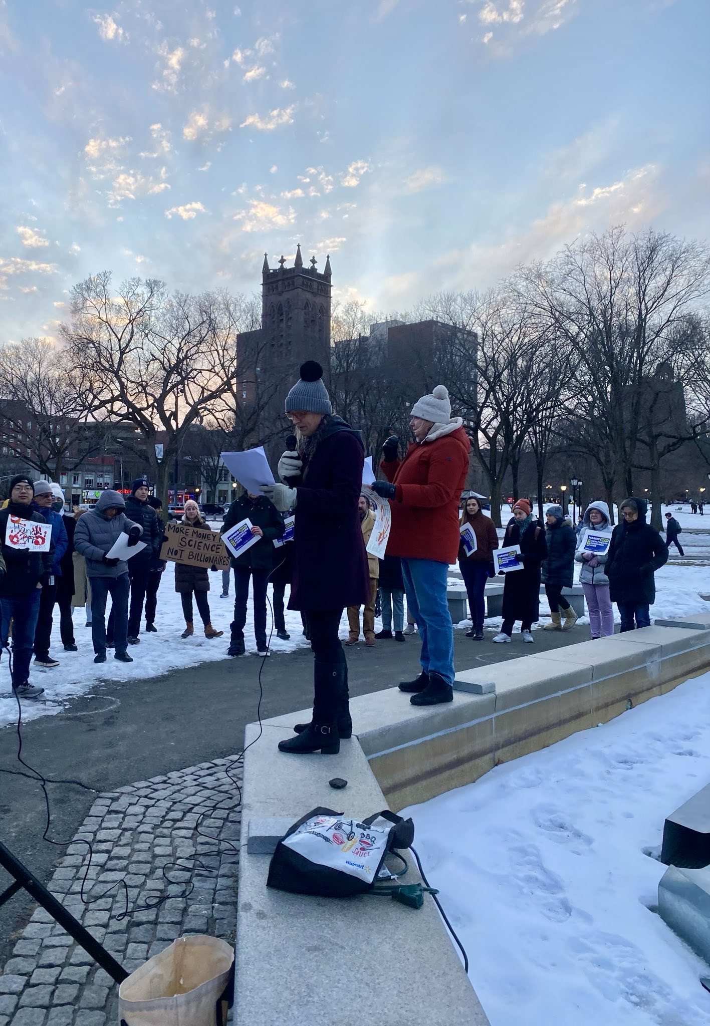 On February 19, 2025, we rallied on the New Haven Green to protest federal funding cuts to research grants in the sciences, particularly in the National Institute of Health and National Science Foundation. Faculty and academic workers in 15 other cities joined us as part of a national Labor for Higher Education day of action.
